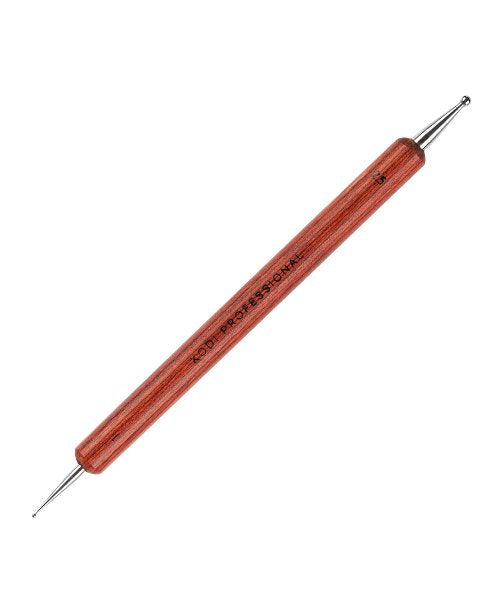 Dotting tool for nail design (2.5mm and 1mm) by KODI PROFESSIONAL is a professional tool from the arsenal of the master of nail service that is designed to draw monograms, dots, commas and bending lines. The side with the smaller diameter (1 mm) is used to create thinner, filigree elements of the picture, the side with the larger diameter (2.5 mm) of the working surface can be used to create volumetric painting with imitation of sculpturing on a gel polish coating. High-quality materials and special processing technologies provide ease of the tool use by the master. Due to the ideally smooth surface of the dotting tool working elements, it is possible to dose the material (gel polish or gel paint) and distribute it evenly on the surface of the nail. The thickness of the line is regulated by the force of the dotting tool pressure and the selected angle of inclination.