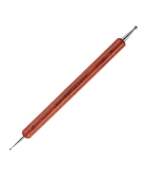 Dotting Tool for Nail Design (3mm and 1.5mm) by KODI PROFESSIONAL is a convenient high-quality tool that is designed for professional drawing of monograms, spherical objects and lines of different thickness. A side with a smaller diameter (1.5 mm) can be used for making smaller and delicate elements of painting, and a side with a larger diameter (3 mm) of the working surface is often used to draw large circles and volume monograms with a pronounced texture of the picture. To do this, a drop of gel polish is taken with a tip of the dotting tool and transferred to the surface of the nail for creation of molding type patterns on a previously prepared background coating. The dotting tool is made of high quality materials using modern technologies for grinding the working part, so the master can control the amount of material taken with the tool and its distribution over the surface of the nail. Due to the perfect roundness of the Dotting Tool ball tips, you can dose the material (gel polish or gel paint) and adjust the pressure force using the Chinese painting technique.